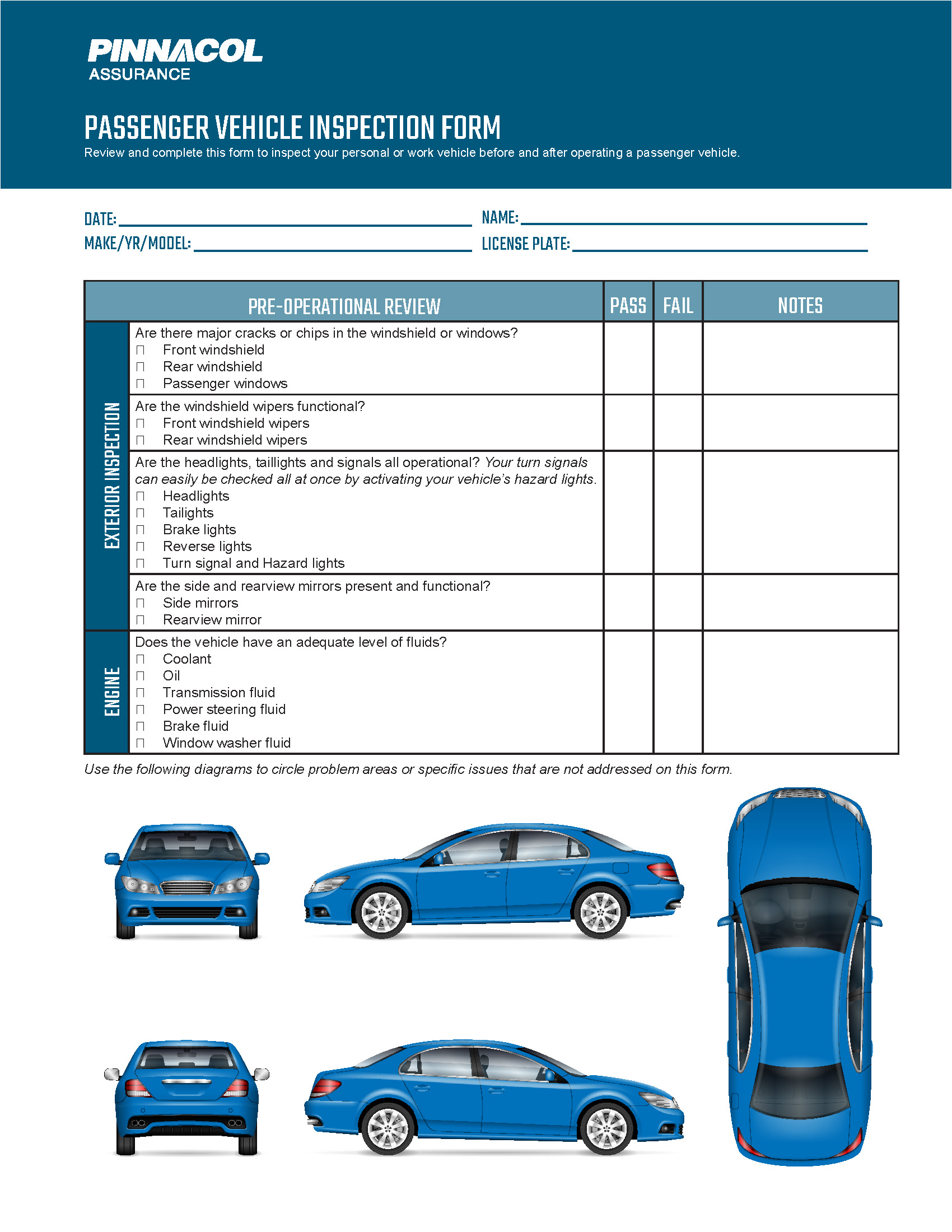 Click here to download a copy of our Passenger Vehicle Inspection Form.